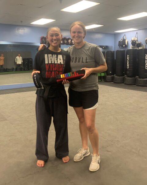 On Saturday July 24th, 2021, after an epic 10-hour test (that was delayed by over 2 years due to injury and COVID), Olivia finally earned her black belt. Mr. Lynch, Olivia’s Krav Maga instructor, mentioned at the beginning of her test that his goal for the day was to try to make her quit. She never did. She believed in herself and knew she had what it took to push through and complete the test. When Olivia showed up on test day, she was confident that her knee was ready and that she had done everything she could to prepare for the that day. Olivia believes that a true athlete needs to have “perseverance, confidence, and mental toughness” to achieve their goals. Through Krav Maga, Olivia has realized that “the only fight we face is ourselves, once we get over that, your body can do anything.” Powerful words, Liv!